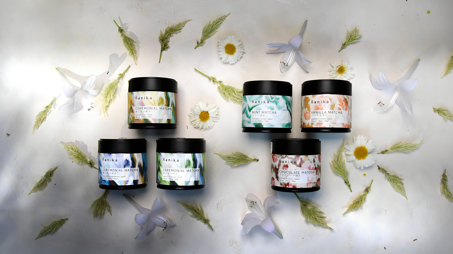 refresh your senses with nanika organic mint matcha— vibrant matcha meets invigorating mint for a refreshing boost of calm and focus.